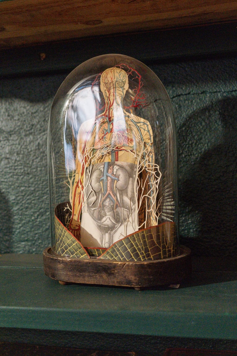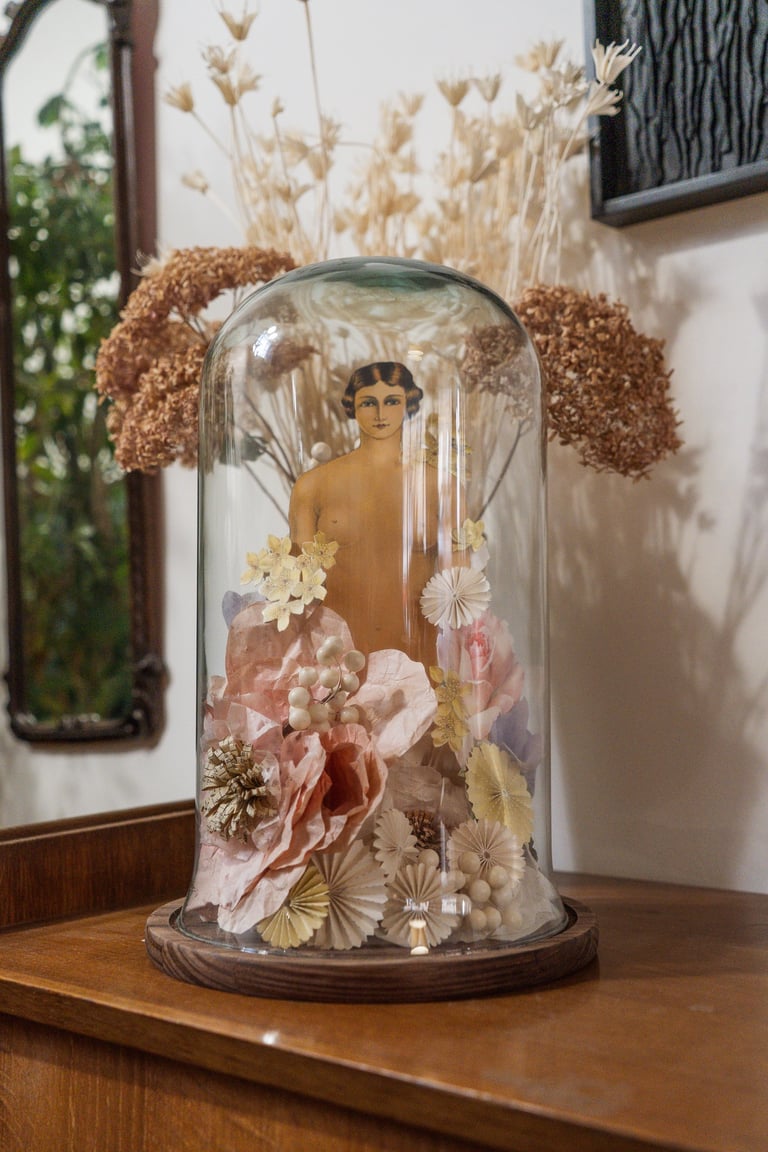 À partir de livres anciens, magazines ou fragments oubliés, elle redonne vie à des papiers chargés d’histoire, qu’elle métamorphose en formes sensibles, parfois organiques, parfois inspirées du textile, du végétal ou du corps.