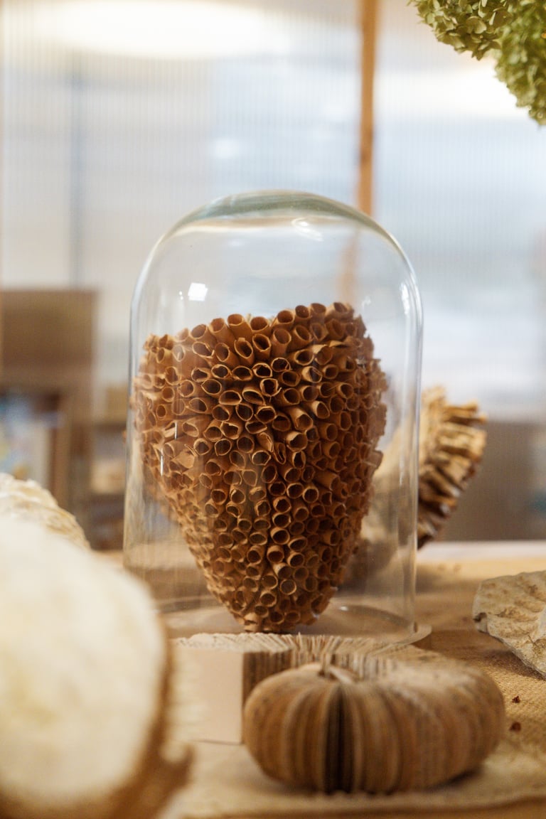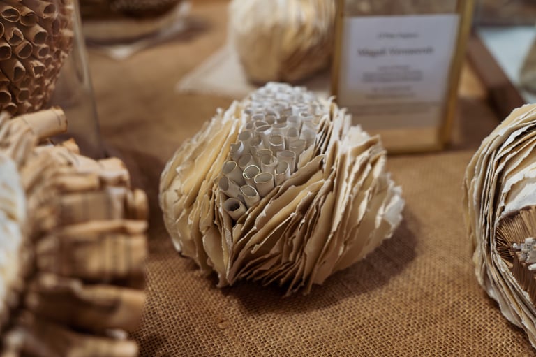 Au cœur de son atelier, Magali Vermeersch développe un univers singulier où le papier devient matière vivante. Diplômée des arts textiles, elle explore depuis plusieurs années les possibilités de ce matériau, qu’elle détourne et transforme avec finesse.